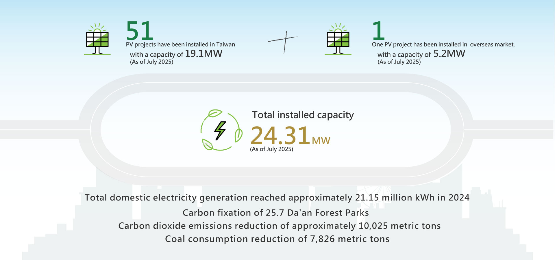 • 51PV projects have been installed in Taiwan, with an aggregate capacity of 19.11MW.